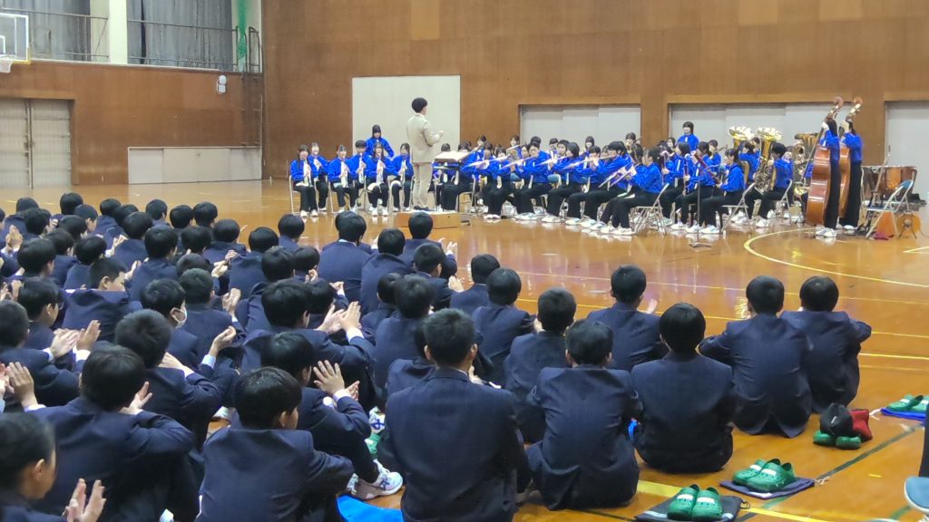 本日は、高校と合同で始業式等の式典や新入生歓迎会を行いました。高校生と同じ場で時間を共有することで、本校ならではの一体感を感じる貴重な機会となりました。また、新入生歓迎会では、吹奏楽部による歓迎セレモニー、応援部による歓迎エール、高校生有志による学校見学と、高校生との交流の場もあり、先輩方の落ち着いた姿や温かい声掛けに触れることで、中学生にとって大きな刺激となりました。初めは緊張した様子も見られましたが、次第に笑顔も増え、和やかな雰囲気の中で交流を深めることができました。
