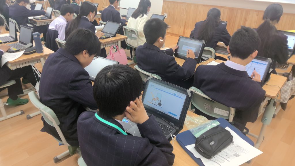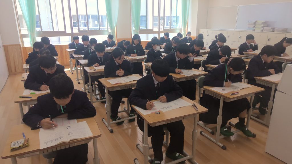 お知らせ 検査や調査を行いました 2026年4月10日 9日に学力推移調査、10日に非認知能力検査を行いました。黙々と真剣に取り組みました。 ↑学力推移調査の様子。英語はすべてリスニングでした。 非認知能力検査の様子。問題は映像を見ながら答えるものでした。